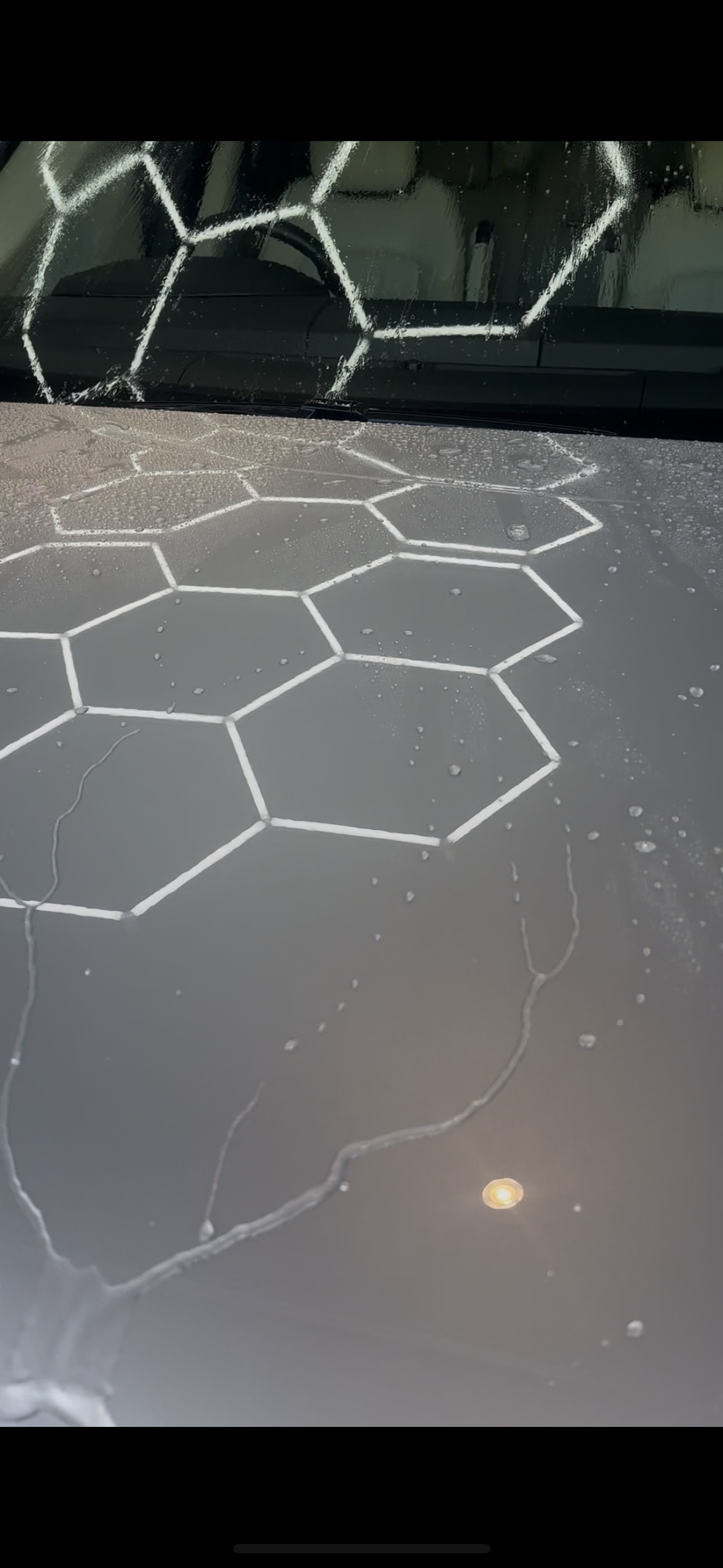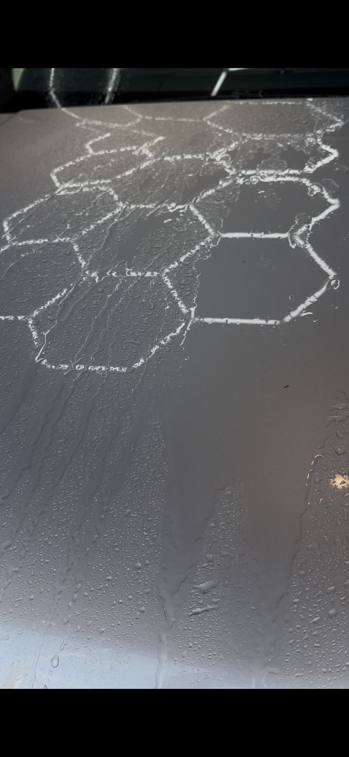 目に見える汚れは落ちていますが空気中に含まれている目に見えないレベルの汚れや温度や湿度の変化によって固着した汚れは少しずつ溜まっていきやがて目に見える水アカ汚れとして目視で確認できるレベルになっていきます。こうなるとコーティングの性能が発揮されず水弾きは落ちてきます。外置きの車両なら1〜3ヶ月もあればこの状態に陥ります。